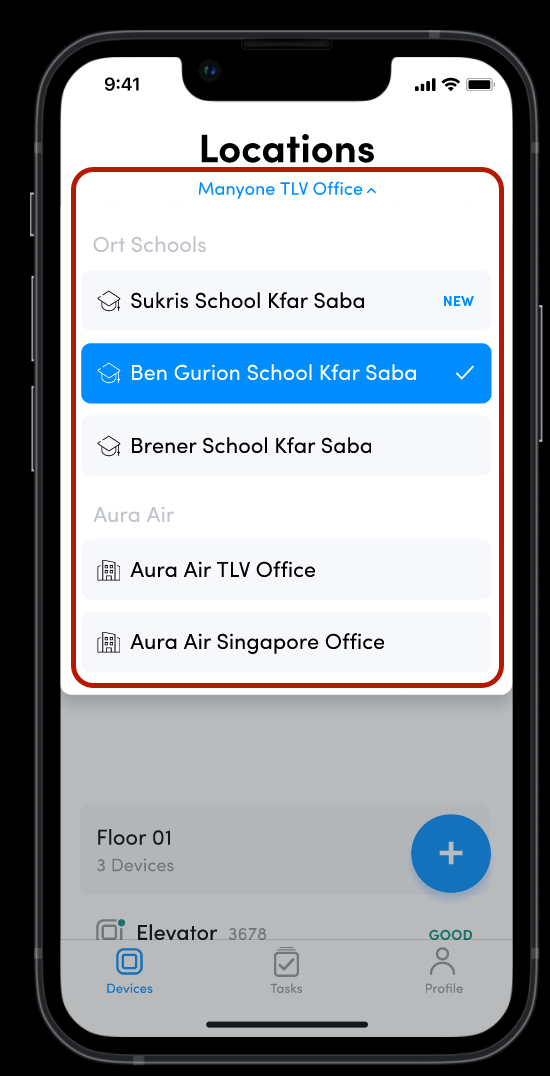 - Tasks and floor information change based on your selected location