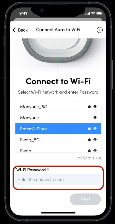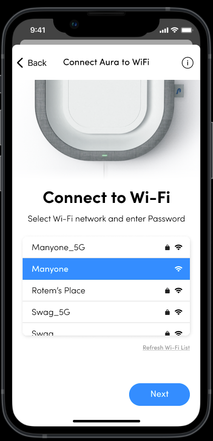 - Look for and select the Aura network: 'Aura-XXXXXX'