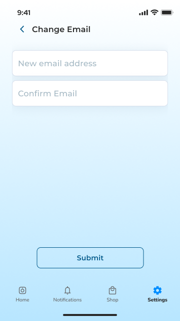 - From the Settings menu, tap "Change Email"