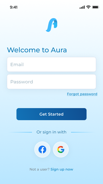- Email & Password: Enter your registered email and password, then tap "Get Started"